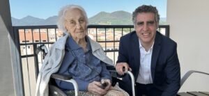 Maria Branyas, a esquerda, com Manel Esteller, que participou dos estudos sobre o DNA da supercentenária. Credito: Divulgação/Josep Carreras Leukaemia Research Institute