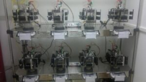 A maior parte dos estudos que avaliam gasto energético é realizada em laboratório com roedores, colocando o animal dentro de uma câmara respirométrica. Esse equipamento é completamente selado – mede constantemente o oxigênio e o gás carbônico, além de ter sensores que monitoram a temperatura do corpo do roedor e quanto ele se movimenta. Uma câmara para um camundongo custa, em média, cerca de US$ 30 mil. Normalmente os laboratórios possuem de 10 a 12 unidades.